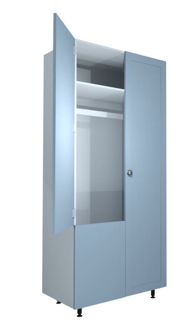 1000mm (1050mm) Double door wardrobe with single hanging rail and shelf above, soft close hinges and solid back.