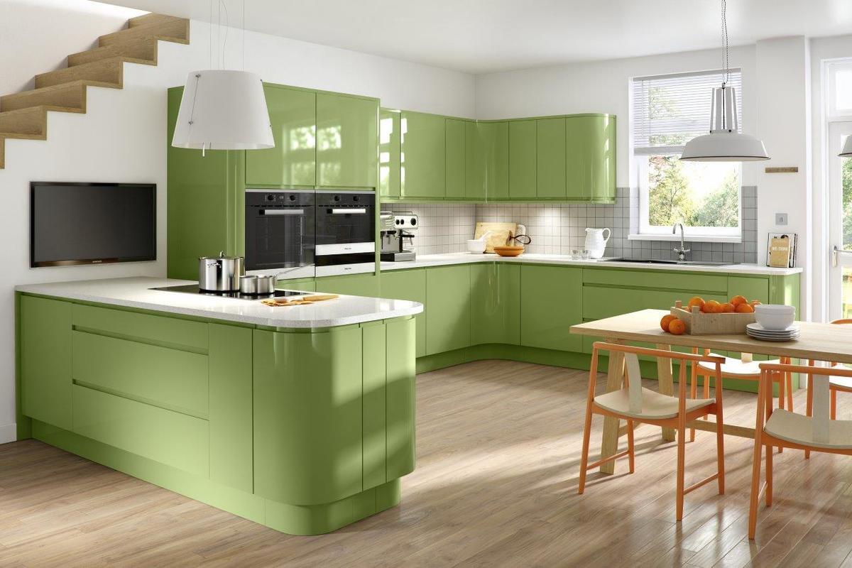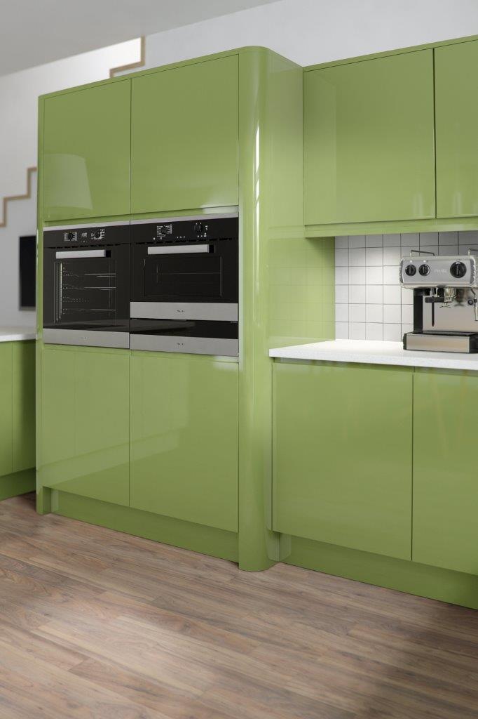 Multiple colours are available in the AIRO range which features flat handle-less cabinets. The colour in the example shown here is 'Verdith Green' but we have other colours available so you can choose a kitchen as individual as you!