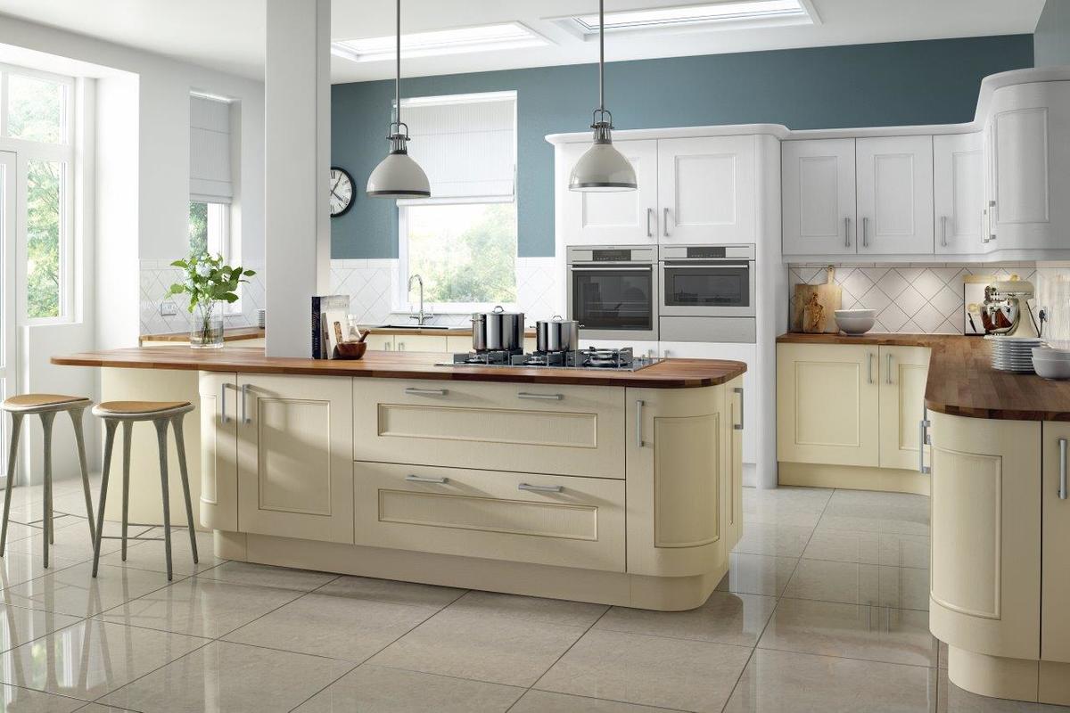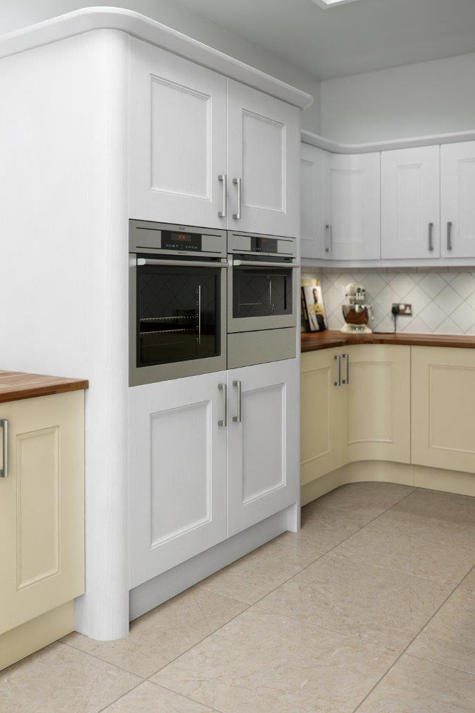 The Edwardian Mowbray features 'Craft' beading details and the units have been painted in the striking combination of White and Edwardian White to give it a contemporary feel.