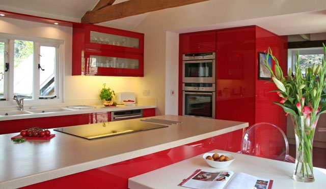 High gloss completely solid acrylic doors, highly durable, non-porous with a superior finish.