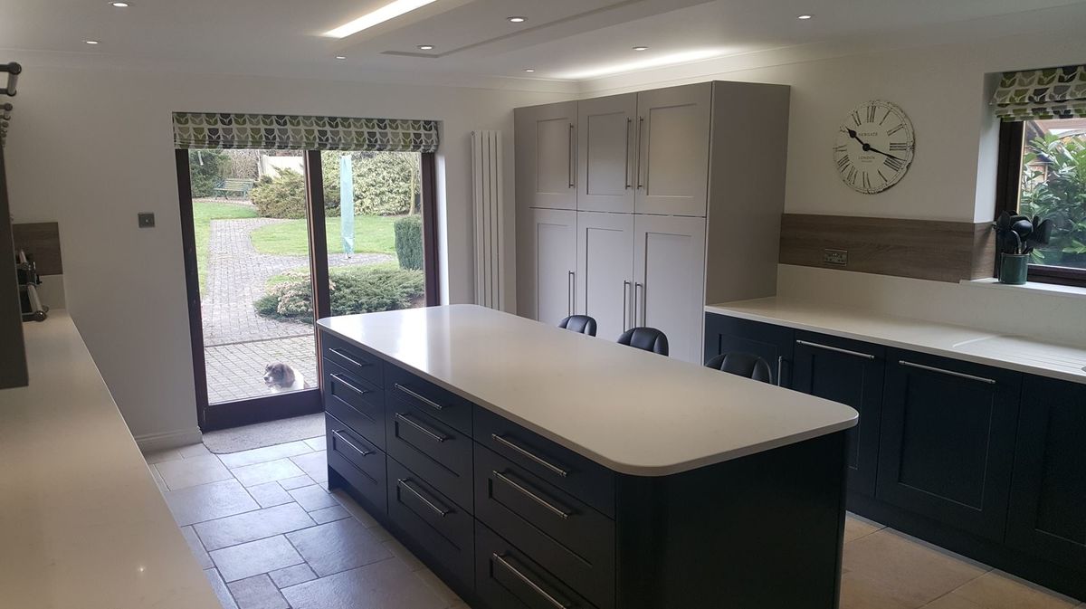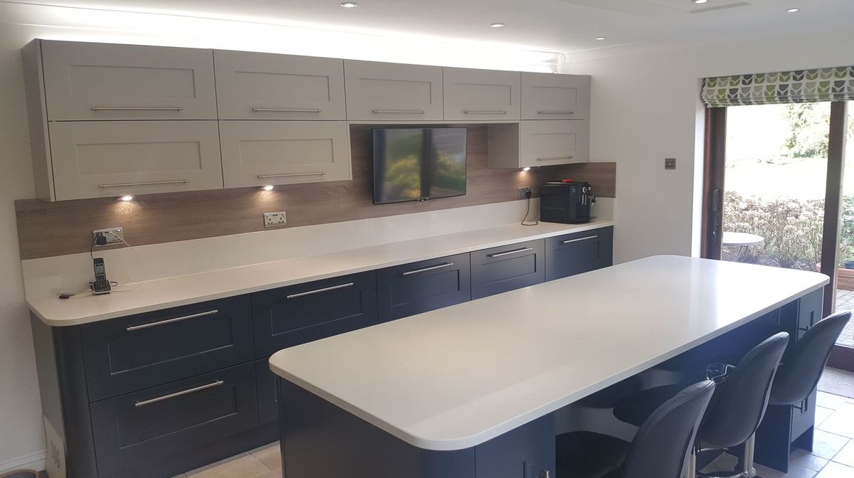 Carbon and grey Monarch shaker fitted kitchen with TV