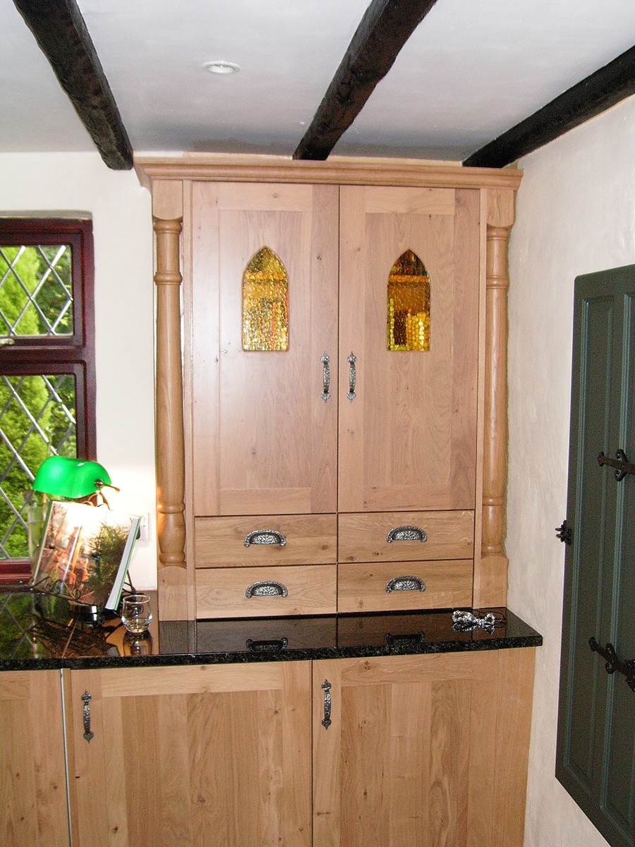 Angolan Black Granite Worktop really complements the tone of this overall kitchen. Contrasting with the French Rustic doors it really gives this kitchen a one of kind feel, and adds a more to the traditional sense. Adding further to the Traditional design, Acanthus Corbels have been added as a feature to complete the overall finish of this kitchen. This kitchen also features convenient storage solutions to bring this design up to date.