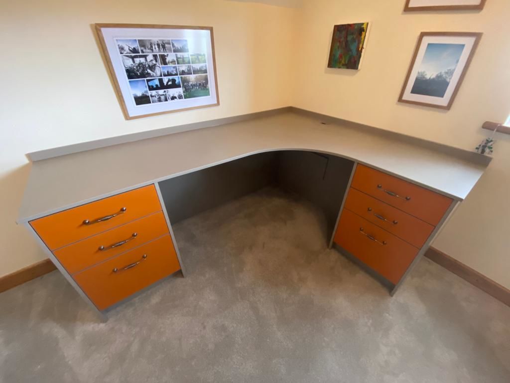 Burnt Orange and stone Grey Bespoke Fitted Home Office Desk