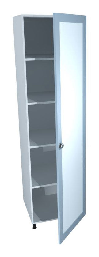 Fixed shelves at approx 410mm spacings, soft close hinges and solid back.